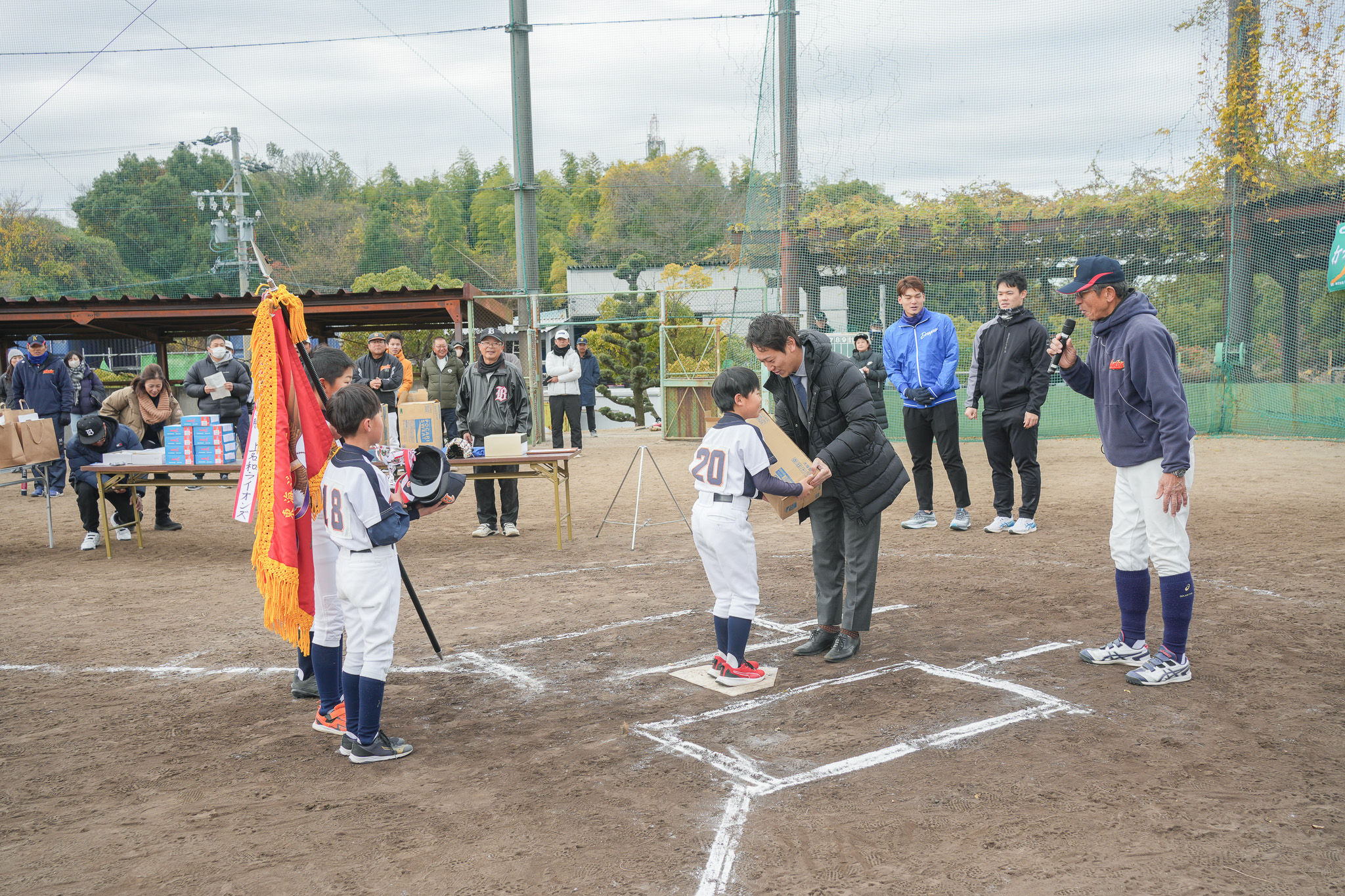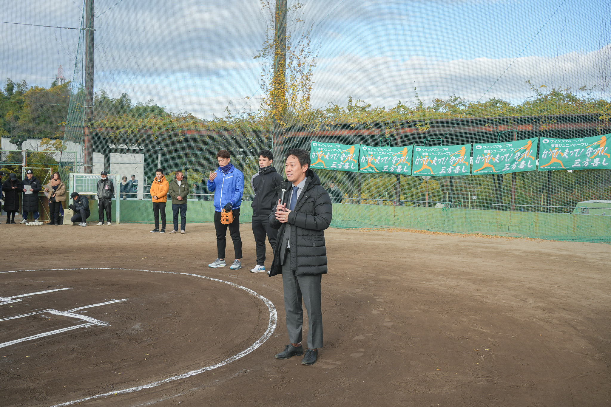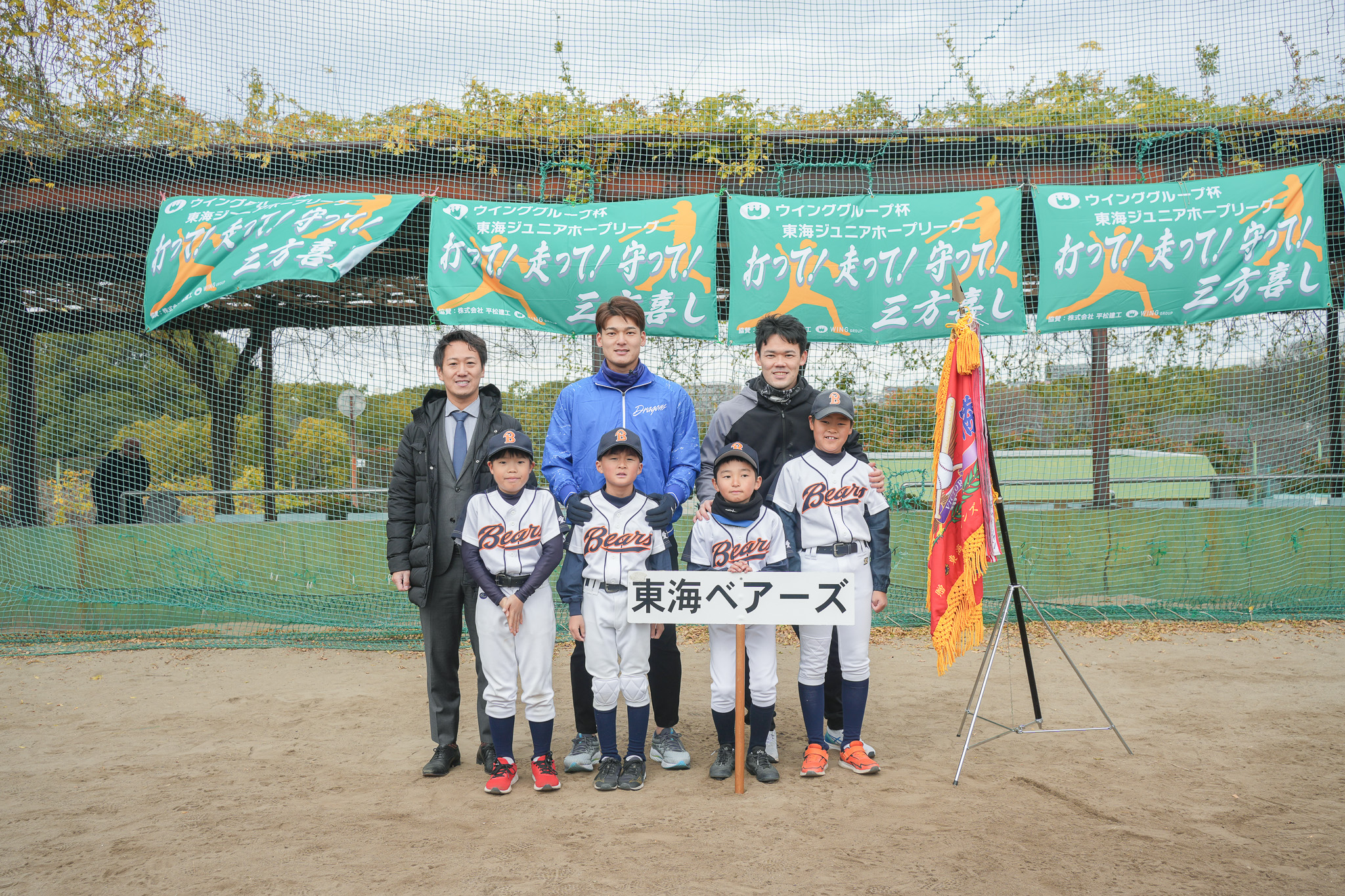 先日12/13(土)に、東海市の平地公園にて、ウインググループとして協賛させていただいている、「ウインググループ杯東海ジュニアホープリーグ」の表彰式と、プロ野球選手による野球教室を開催いたしました。